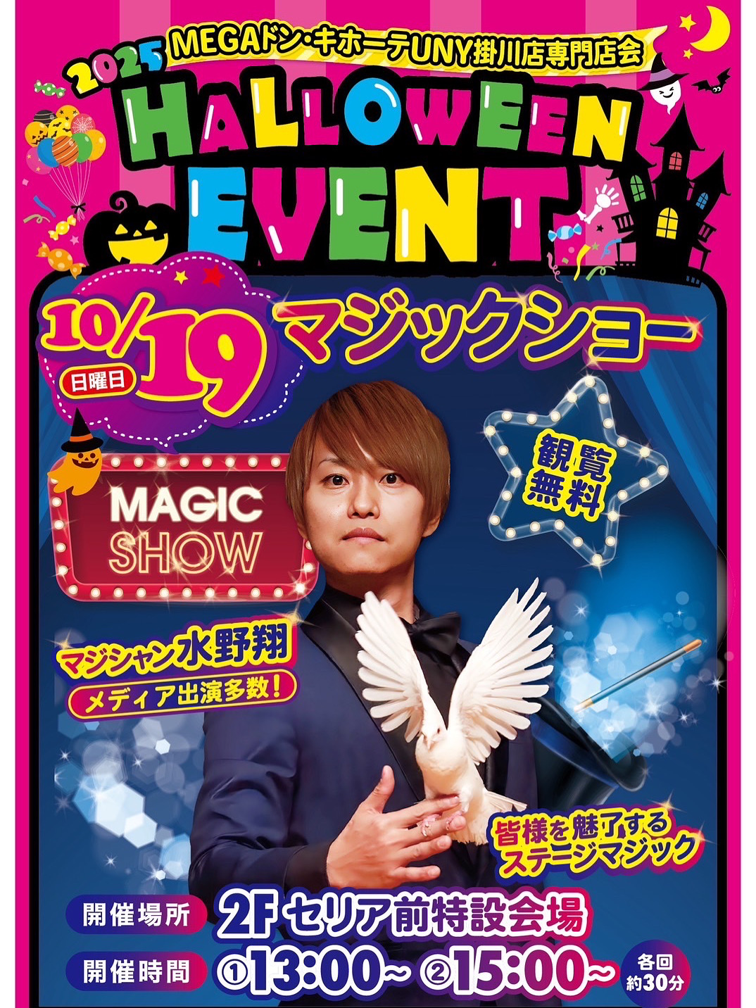 マジックショー 1回目10:30~  2回目13:30~  3回目15:00~